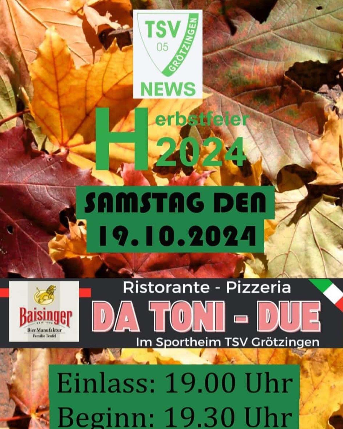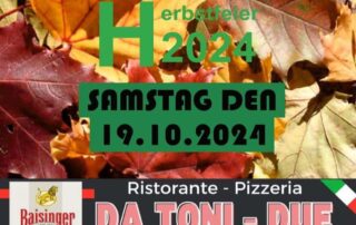 Am 19.10.2024 findet unsere Herbstfeier statt in unserem Sportheim. Wir würden uns über zahlreiche Gäste sehr freuen