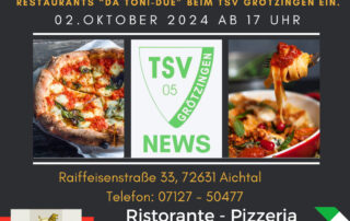 Endlich ist es soweit - das Warten hat ein Ende! Unser neuer Pächter des TSV Sportheims eröffnet am 02.10.24 sein Restaurant! Wir und er freuen uns darauf und vor allem [...]